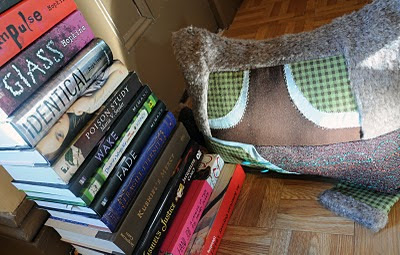 This is my buddy Ichabod. He's just checking out some of the books...that I have..stacked around the floor >_>. I don't have room for them all! XD.